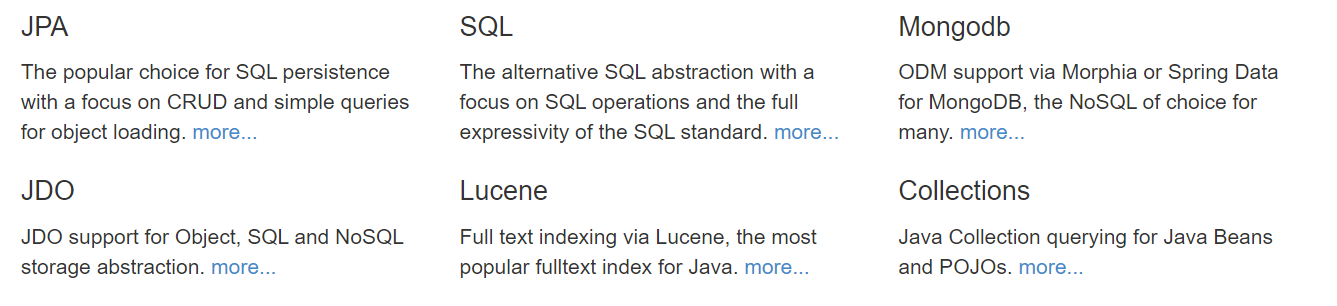 jpa 뿐만 아니라 아래와 같은 다양한 언어를 지원해 준다고 한다.